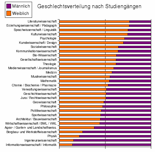 Wenn Ihr euch heute dazu entschlossen haben solltet, ein Studium zu beginnen, und euch gleichzeitig ziemlich alleine fühlt, schaut euch doch mal die Statistiken hier an, insbesondere die Geschlechtsverteilung nach Studiengängen. Und dann überdenkt eure Wahl noch einmal. Wozu die feinen StudiVZ-Daten doch gut sind.
